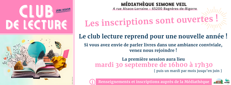 Pour la 2ème année consécutive, la Médiathèque Simone Veil vous propose un rendez-vous tous les premiers mardis du mois de 16h à 17h30, pour toutes celles et ceux qui ont envie d'échanger, de discuter et de faire partager leurs lectures !